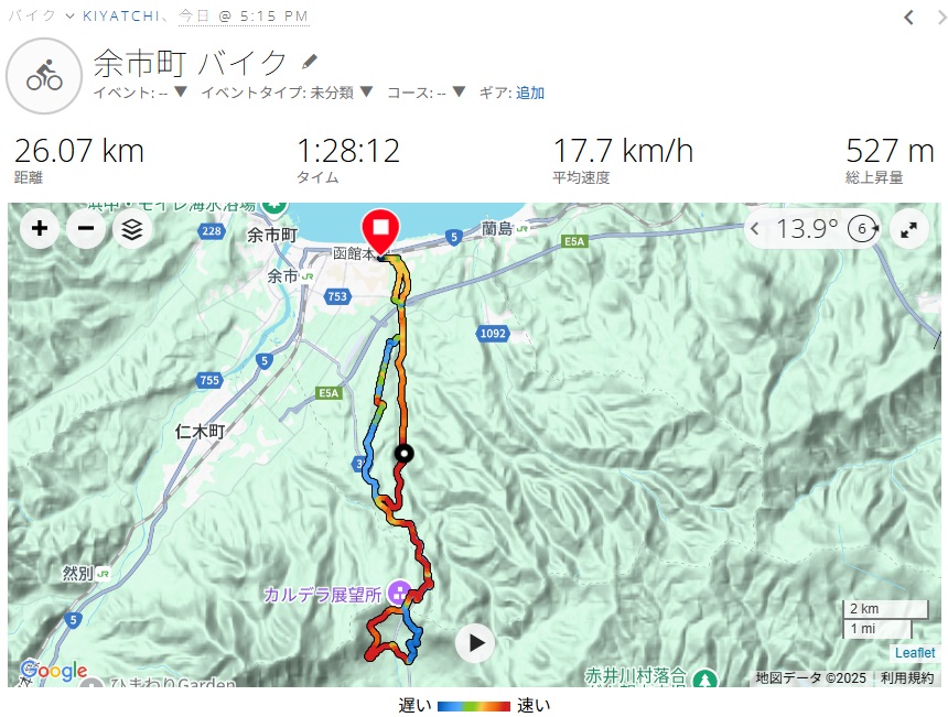 倶知安時代や留萌時代のことを考えると、朝それなりの距離を余市でトレーニングすることは可能な筈です。もう少しルーティーンをしっかり確立したいです。